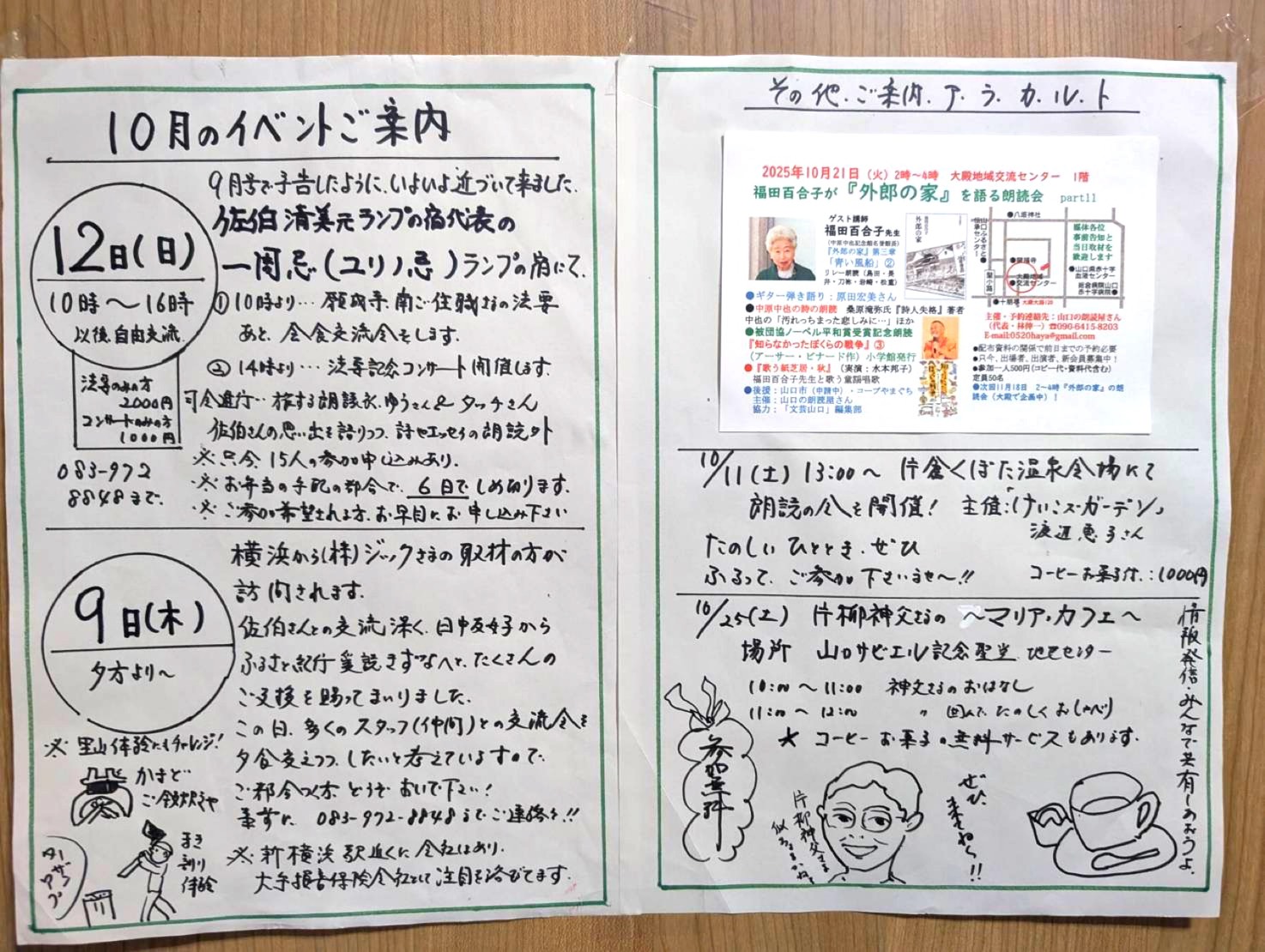 10月12日(日) 10時~16時 佐伯清美 元 ランプの宿代表の一周忌(ユリノ忌)